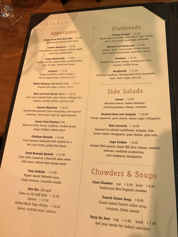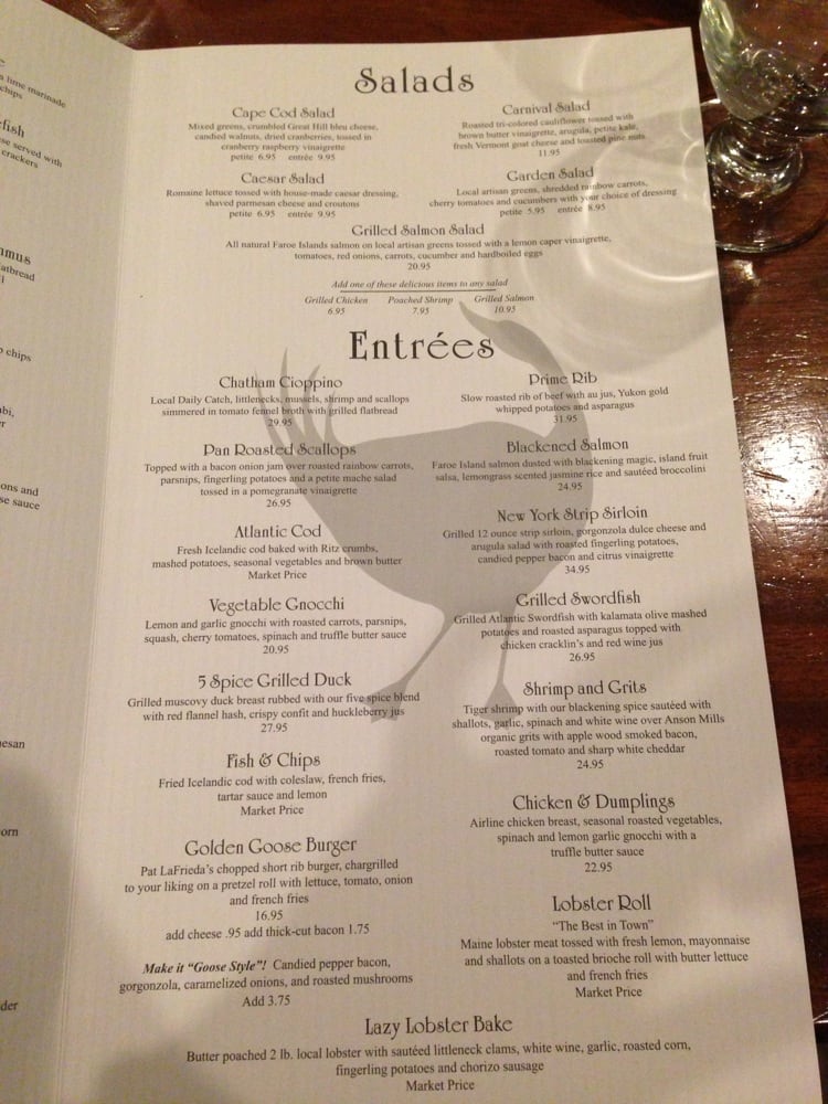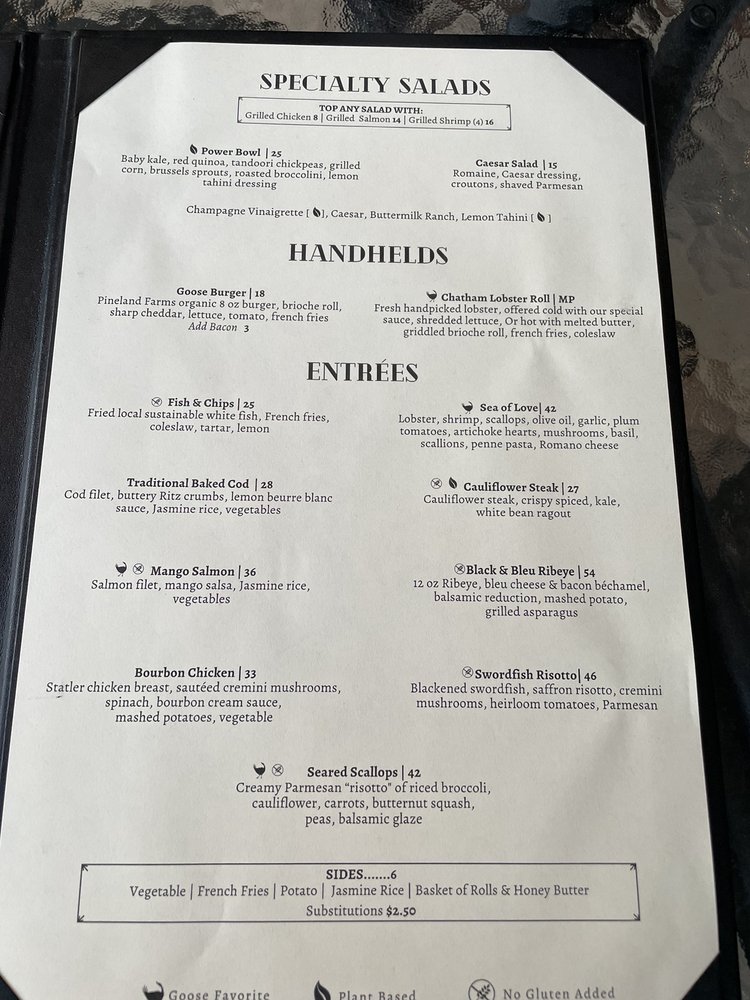 Welcome to Wild Goose Tavern, where the essence of New American cuisine meets the charm of Chatham, Massachusetts. Located at 512 Main St, this tavern delivers a culinary experience that combines fresh seafood with upscale dining vibes.